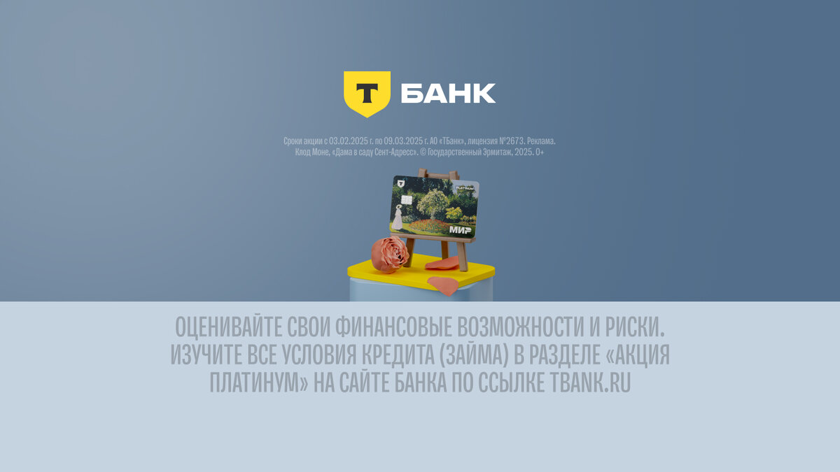 Оценивайте свои финансовые возможности и риски. Изучите все условия кредита (займа) в разделе «Акция Платинум» на сайте Банка по ссылке tbank.ru. Сроки акции с 03.02.2025 г. по 09.03.2025 г. АО «ТБанк», лицензия №2673. Реклама.